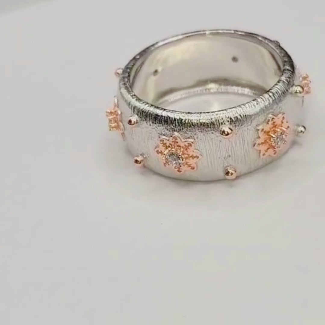 Bague argent 925 anneau large brossé or rose