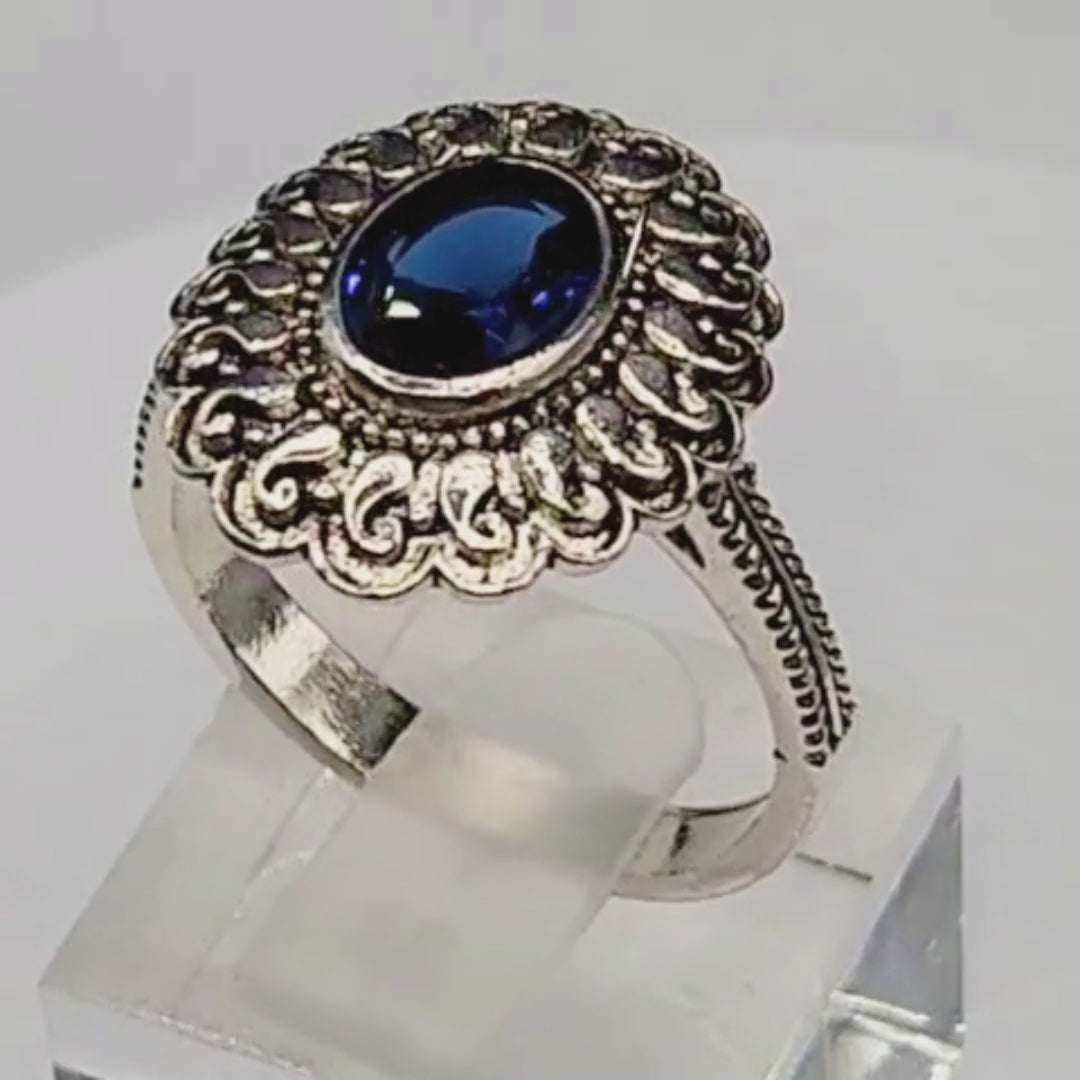 Bague argent 925 femme – Pierre bleue ovale facettée