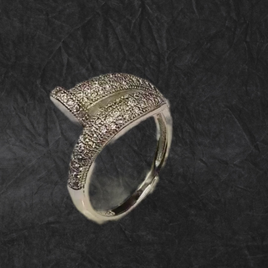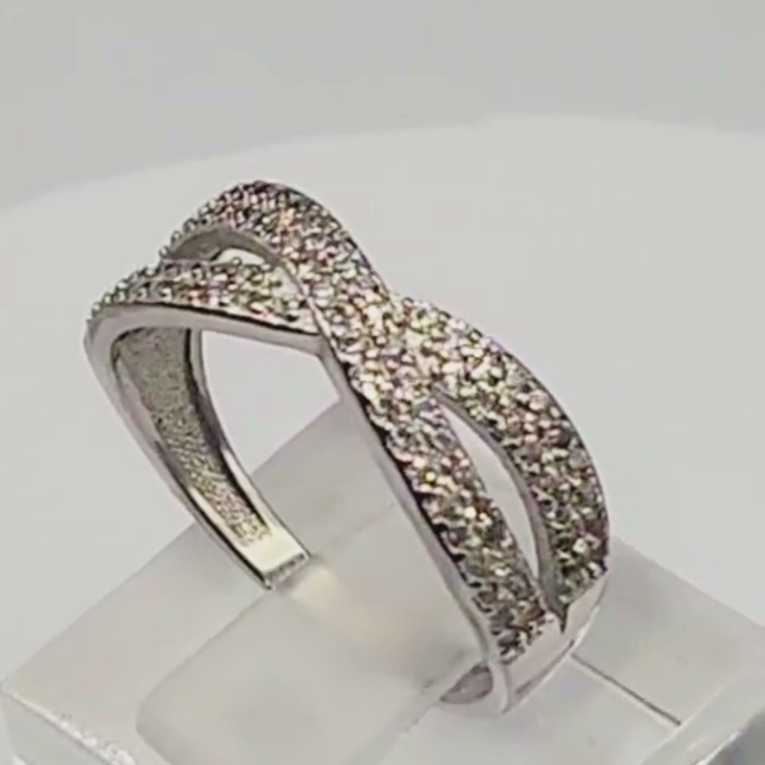 Bague argent 925 croisée zircons scintillants.