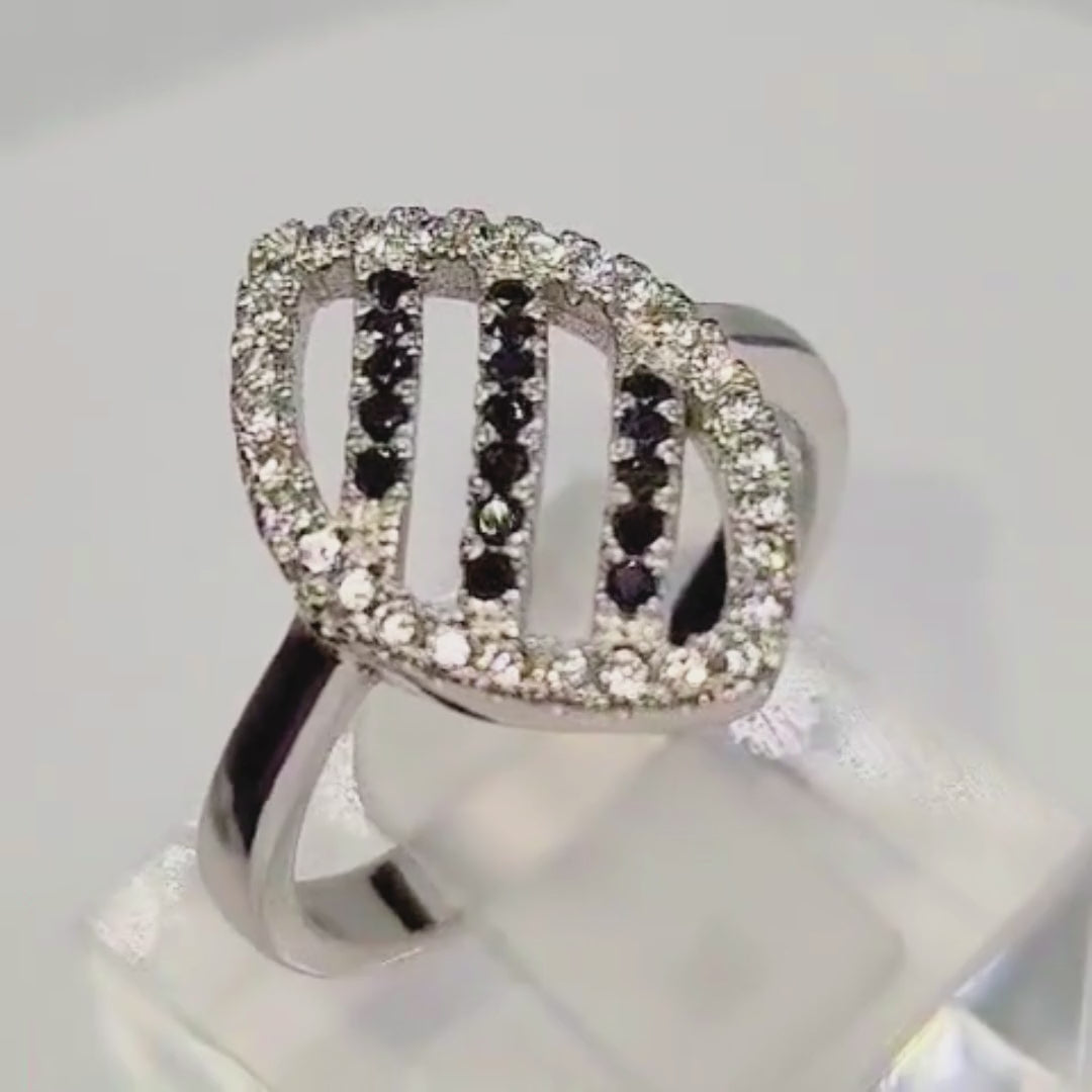 Bague argent 925 losange zircons noirs et blancs