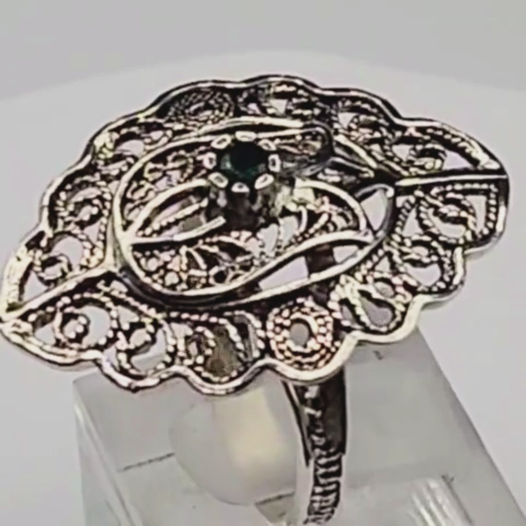 Bague Argent 925 Ajourée & Pierre Verte