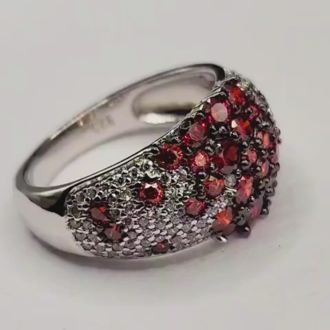 Bague argent 925 pavée de cristaux rouges