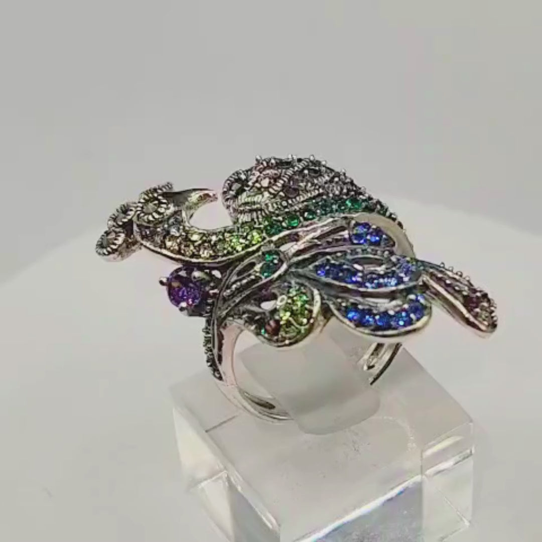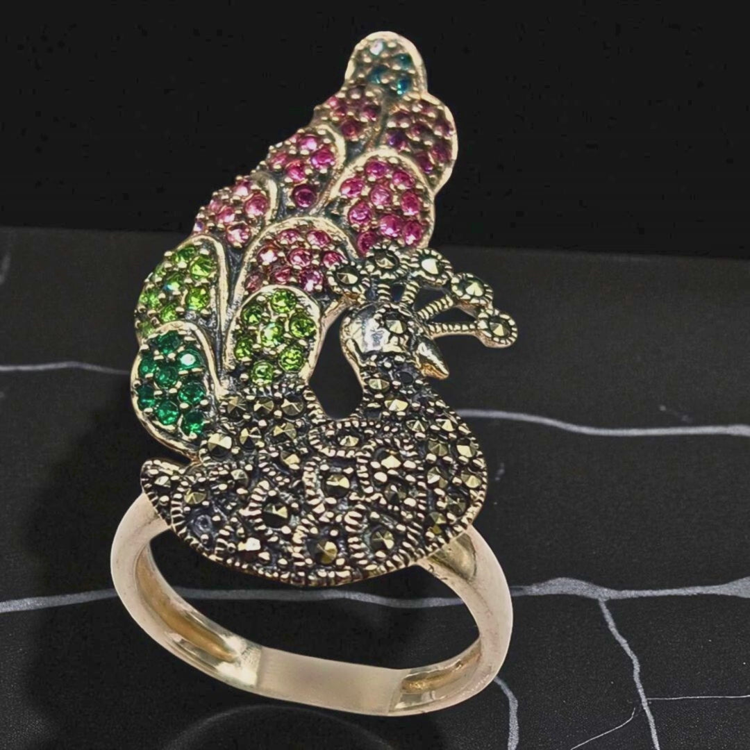 Bague Argent 925 Paon Marcassites & Pierres
