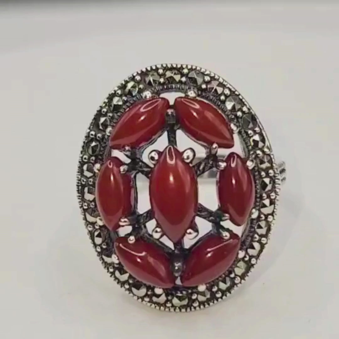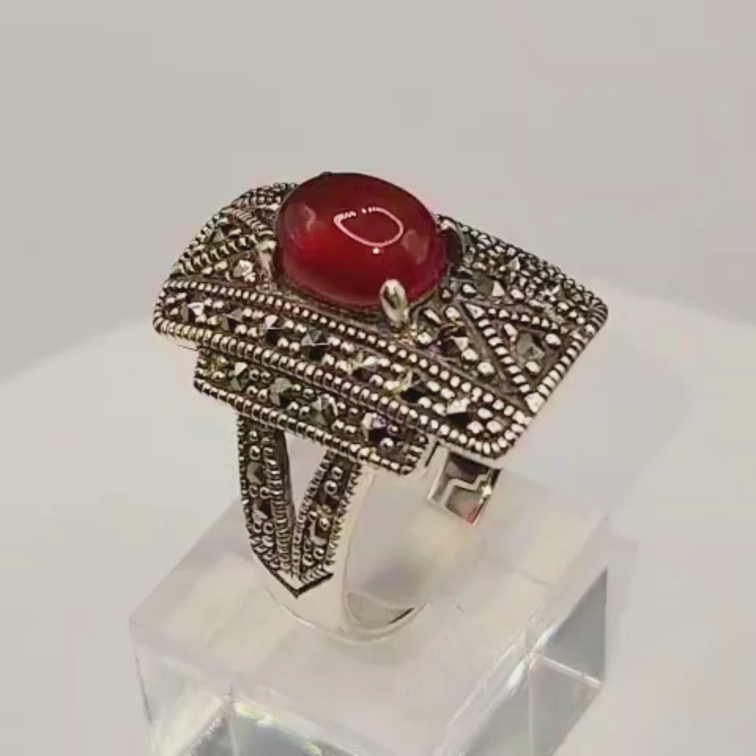 Bague argent 925 cornaline et marcassites