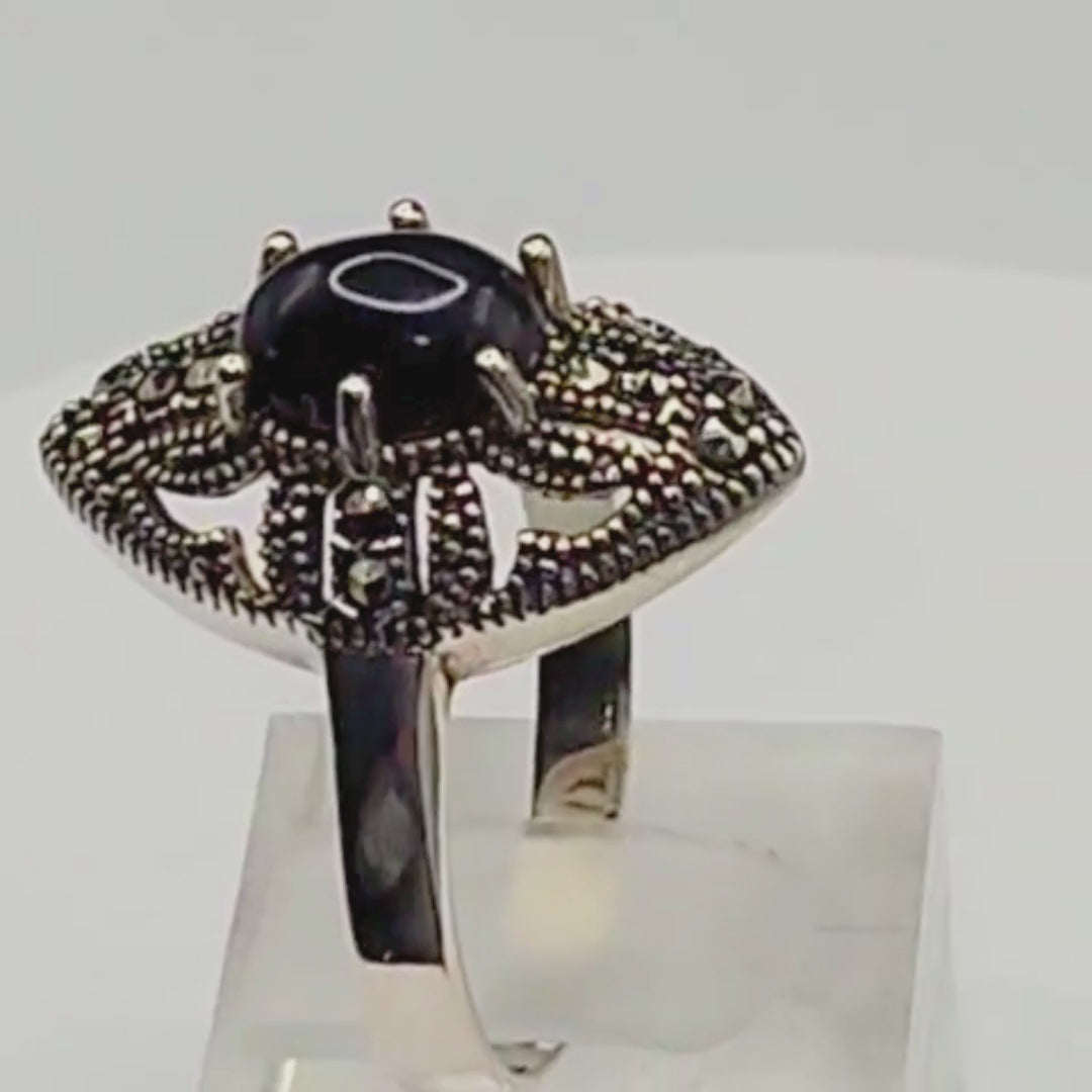 Bague Argent 925 Onyx Noir & Marcassites