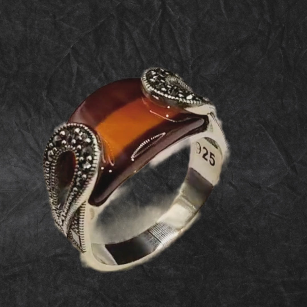 Bague Argent 925 Agate Orange & Marcassites