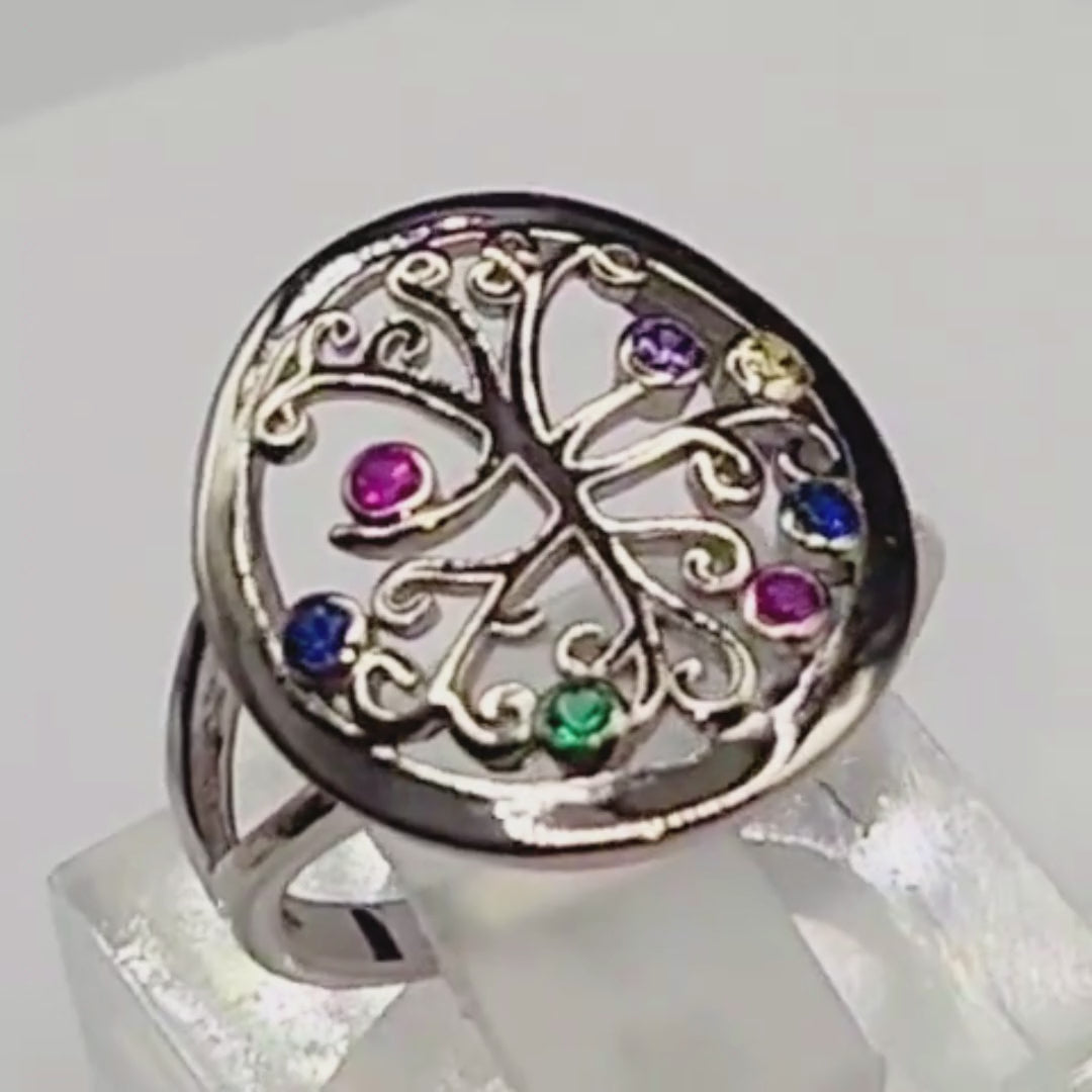 Bague argent 925 Arbre de Vie pierres multicolores