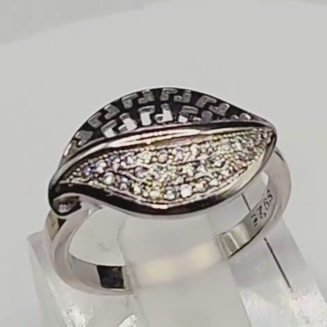 Bague argent 925 feuille ajourée zircons scintillants