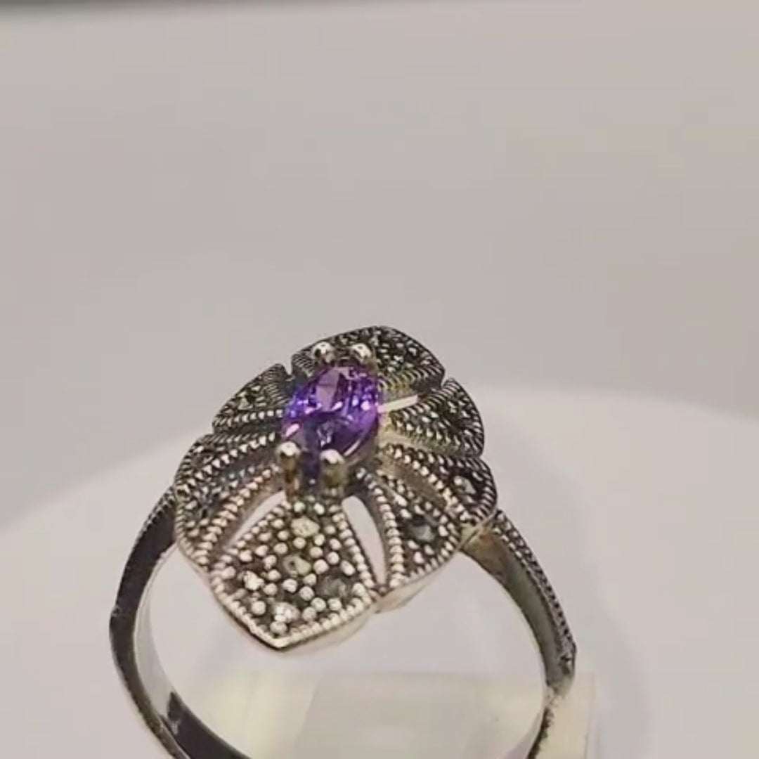 Bague argent 925 améthyste et marcassites