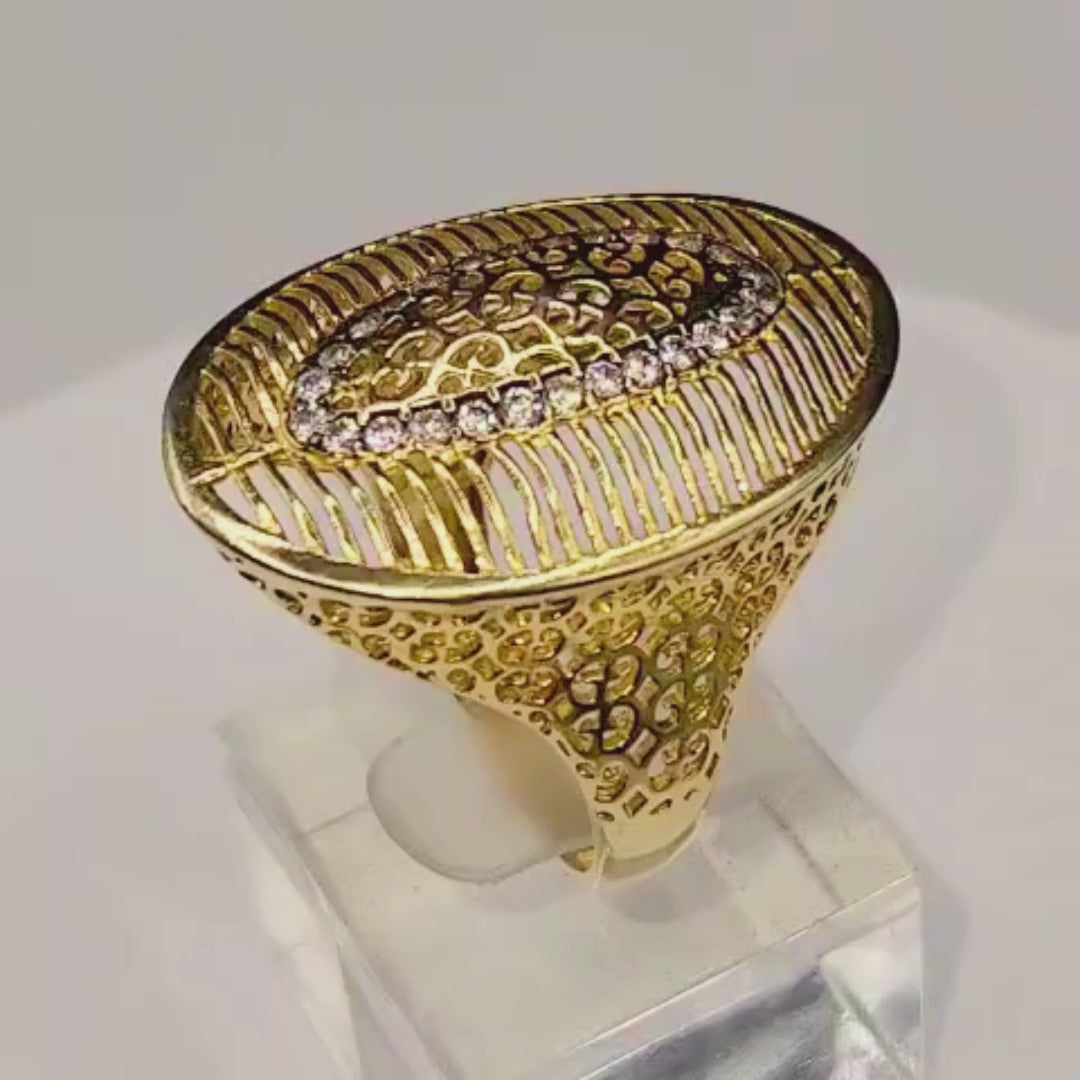 Bague argent 925 doré ajourée avec pierres