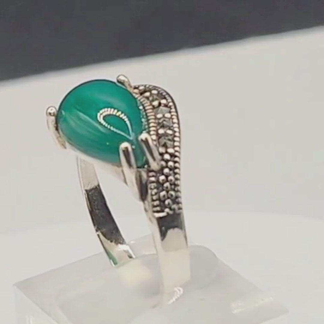 Bague Femme Argent 925 – Pierre Verte Marquise & Marcassites