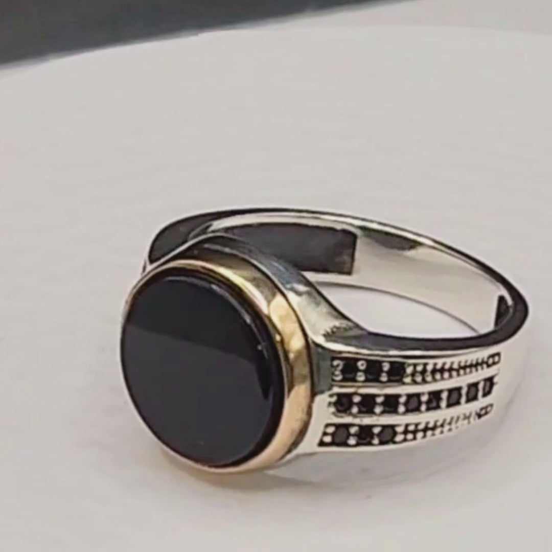 Bague Homme Argent 925 – Onyx noir circulaire & centre texturé