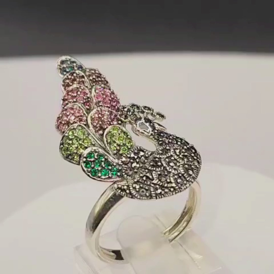 Bague argent 925 paon pierres colorées