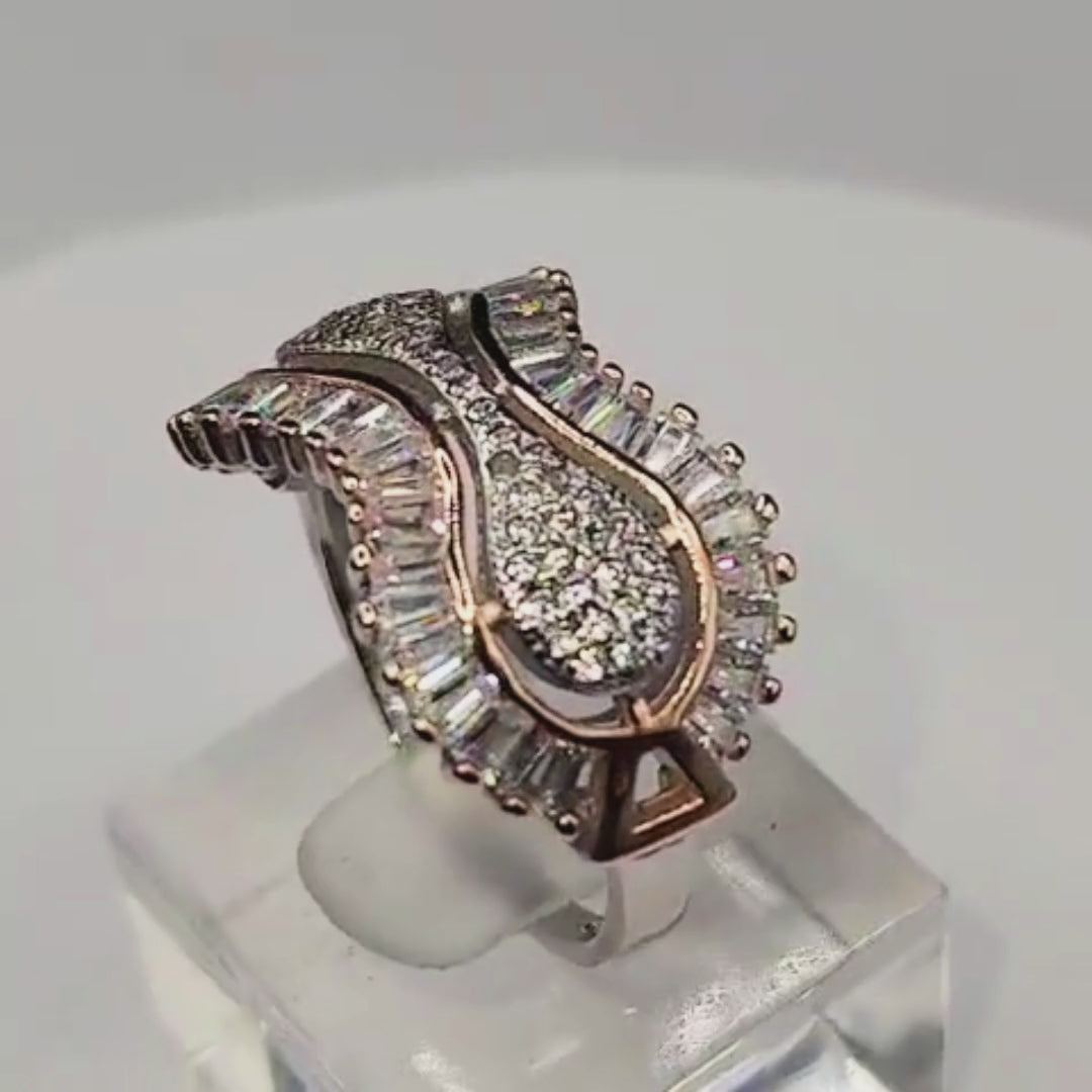 Bague Argent 925 Pavée Baguettes & Zircons