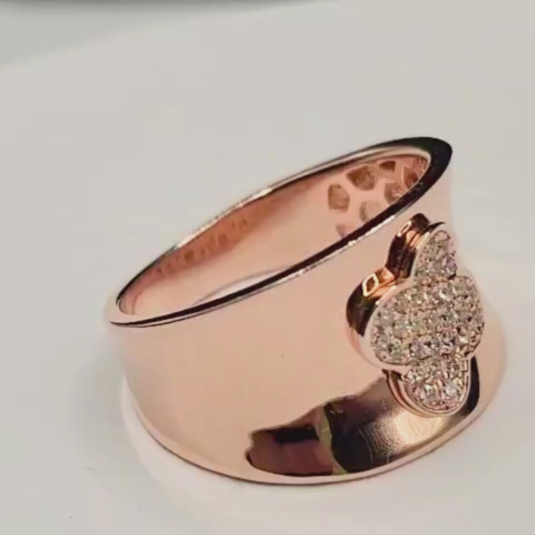 Bague argent 925 rosée – large anneau, trèfle pavé