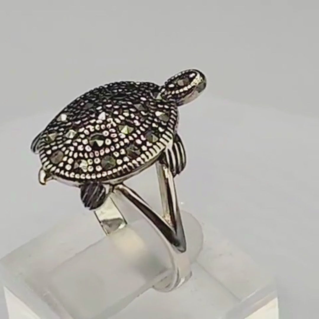Bague argent 925 tortue femme – Marcassites scintillantes