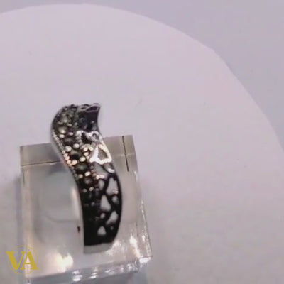 Cette bague en argent 925 massif se distingue par son motif ajouré délicat et sa courbure élégante. L’effet oxydé souligne chaque détail du décor, offrant un rendu visuel expressif, raffiné et facile à porter au quotidien.