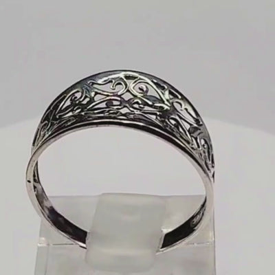 Cette bague en argent 925 séduit par son motif ajouré inspiré de l’art floral et des arabesques.