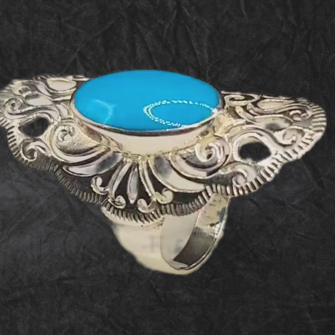 La monture en argent 925 massif, finement ajourée et décorée de motifs ciselés, apporte une élégance vintage et un style affirmé.