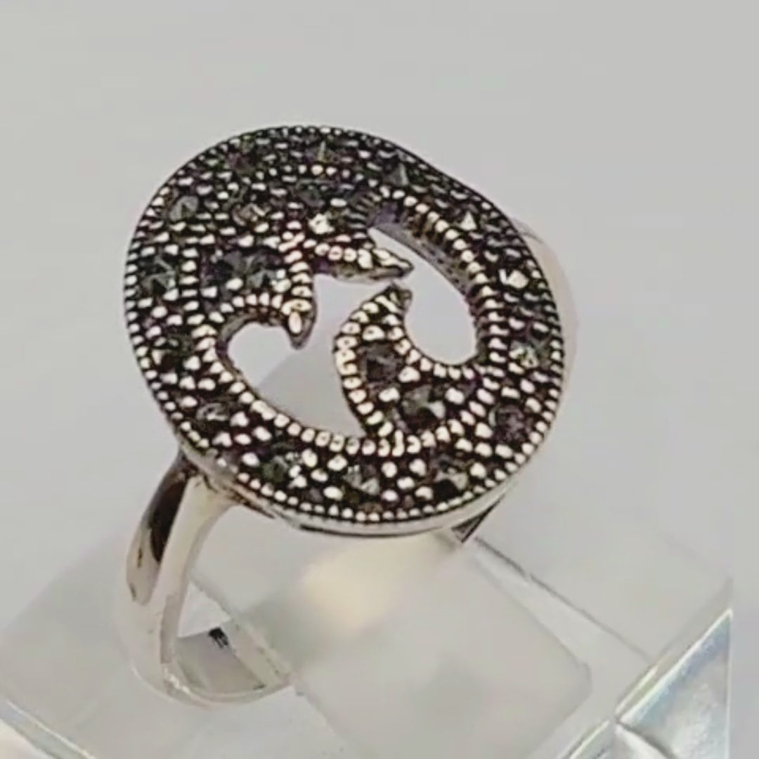 Son motif sculpté et orné de véritables marcassites capte la lumière avec élégance, révélant tout le charme des bijoux d’antan revisités.
