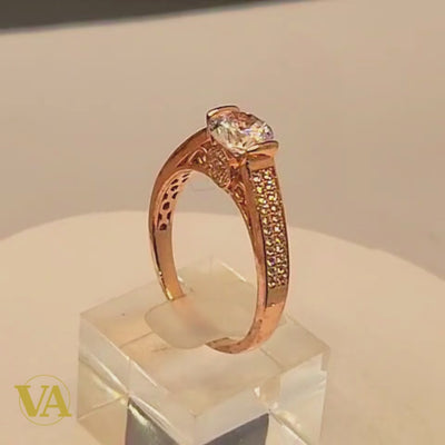 Bague Femme Argent 925 Plaqué Or Rose – Solitaire Zirconium Élégant