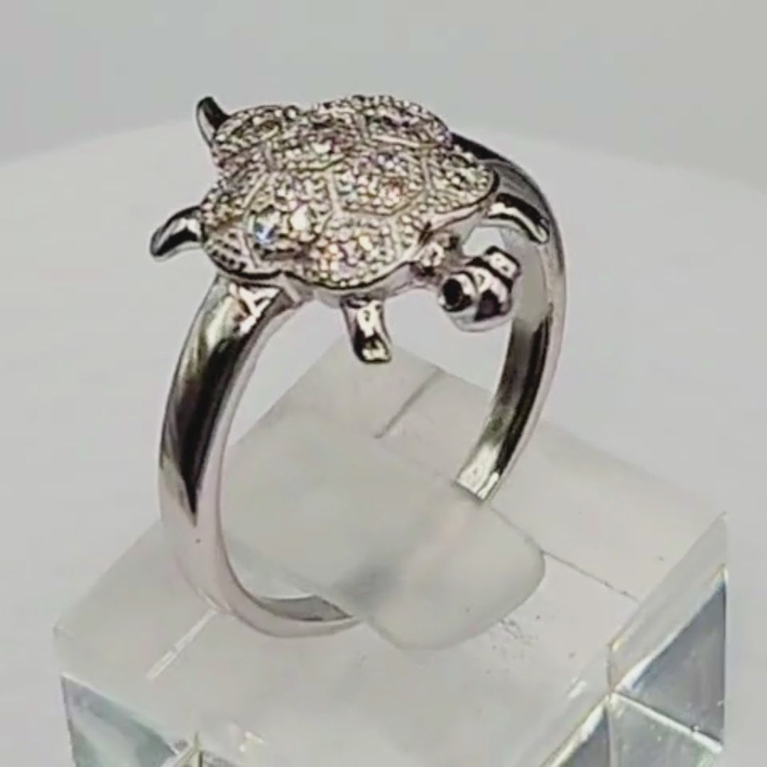 Bague femme argent 925 tortue sertie d’oxydes scintillants