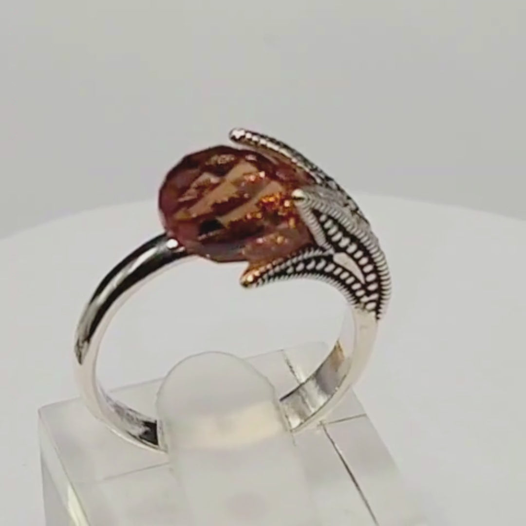 Cette bague en argent 925 séduit par sa sultanite taillée en forme ovale facettée, dont les nuances évoluent selon la lumière, passant de tons ambrés à des reflets dorés. L’éclat mystérieux de cette pierre rare est sublimé par un sertissage raffiné de marcassites.