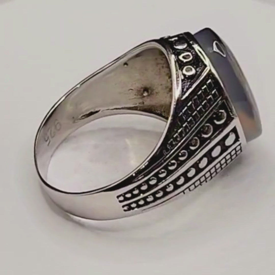 Bague Homme Argent 925 – Agate brune cabochon ovale & monture gravée | Vindicta
