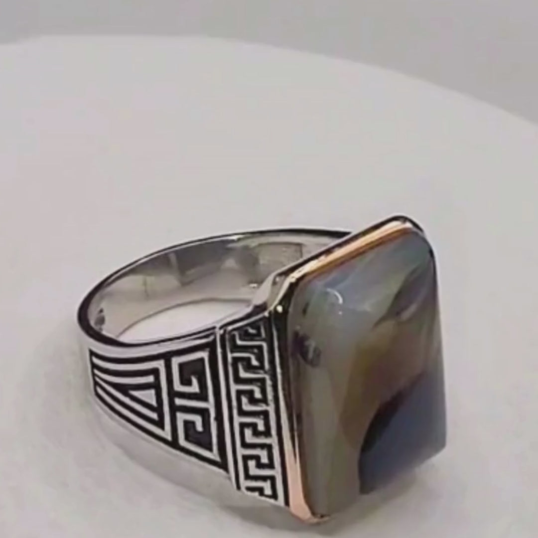 Bague Homme Argent 925 – Agate Brune Naturelle