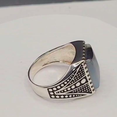 Bague Homme Argent 925 Agate Rubanée – Élégance & Harmonie