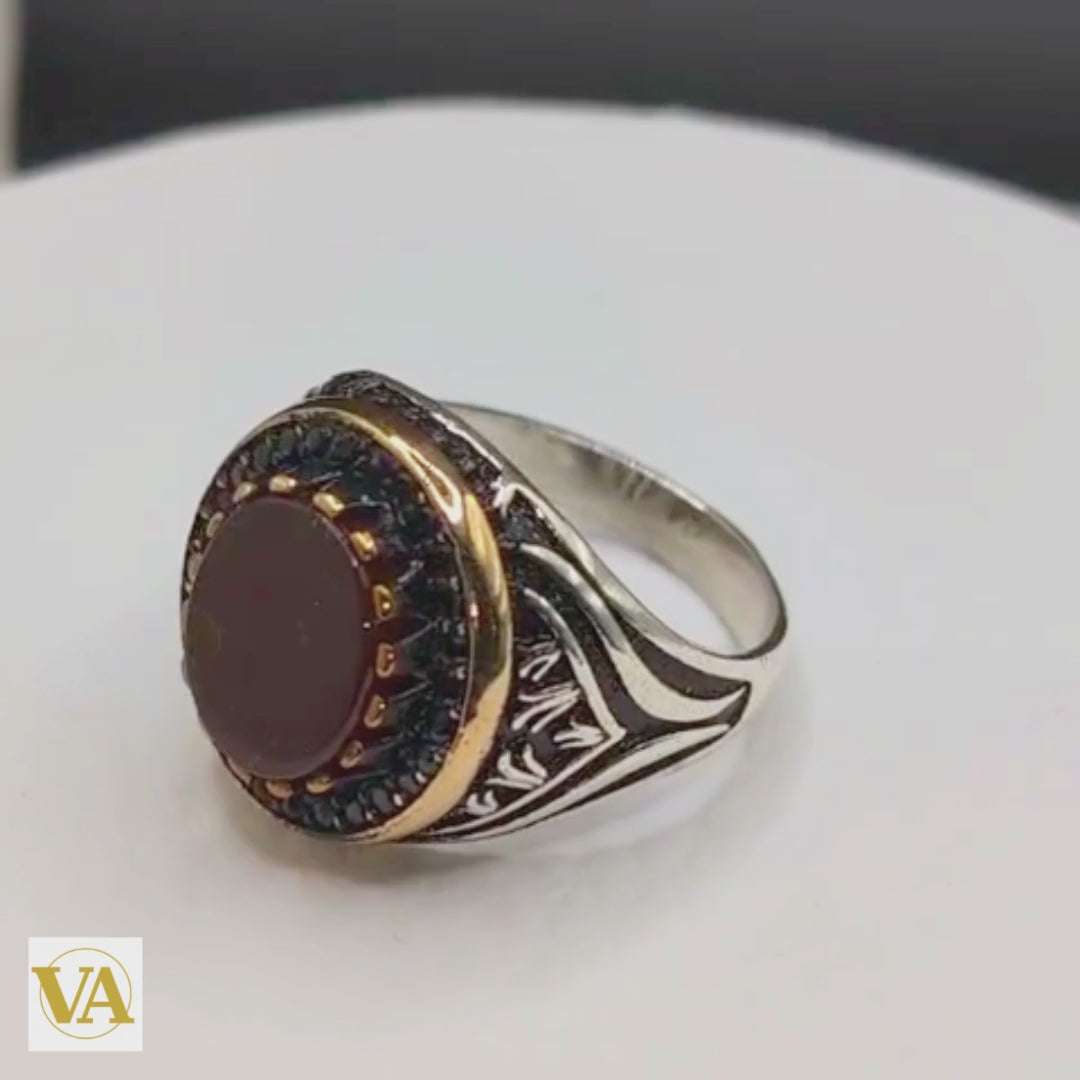 Bague homme – Argent 925 – Cornaline & oxydes noirs