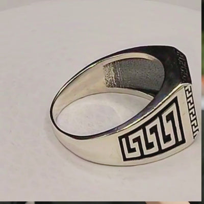 Les motifs géométriques de style grec gravés sur la monture renforcent son caractère authentique et intemporel.