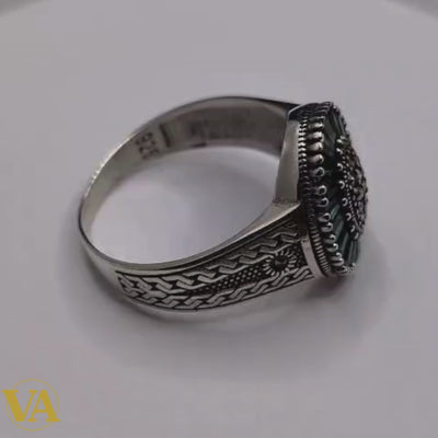 Bague Homme Argent 925 – Marcassite & Vert Émeraude