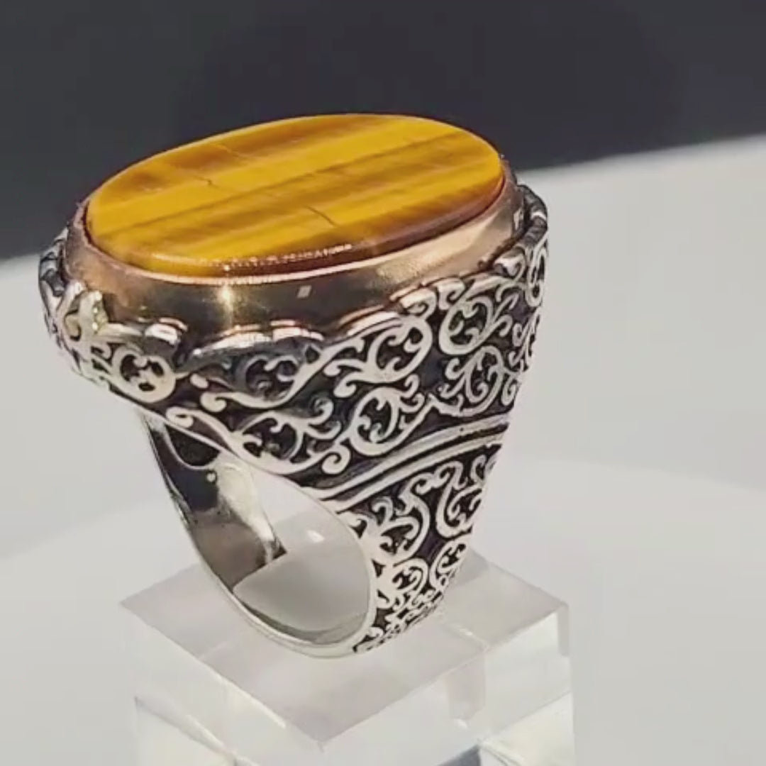 Bague homme argent 925 rotative – Œil de Tigre & Agate