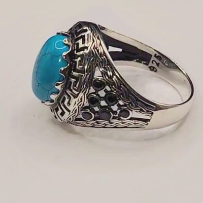 Bague Homme Argent 925 – Turquoise ovale cabochon & monture ciselée