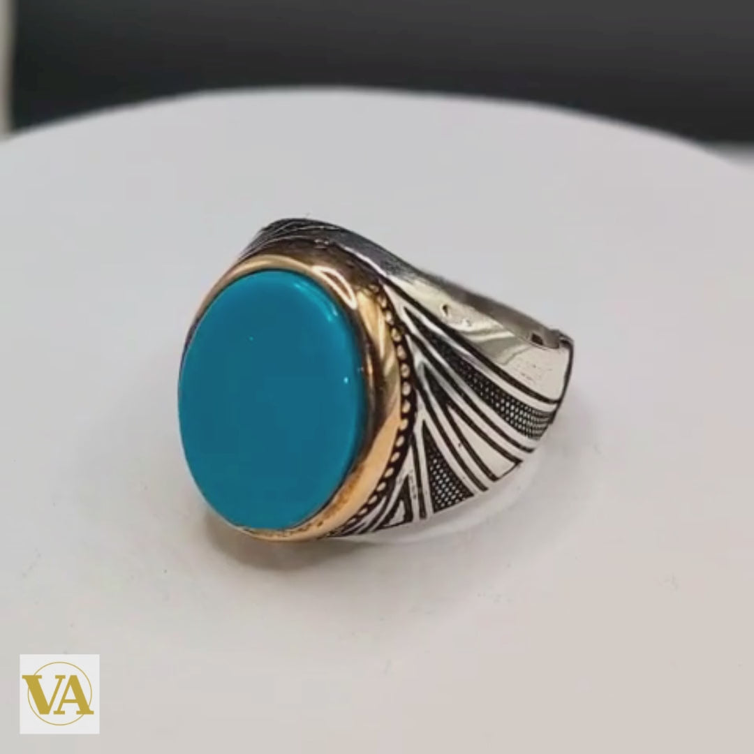 Bague Homme Turquoise – Argent 925 – Chevalière Ovale