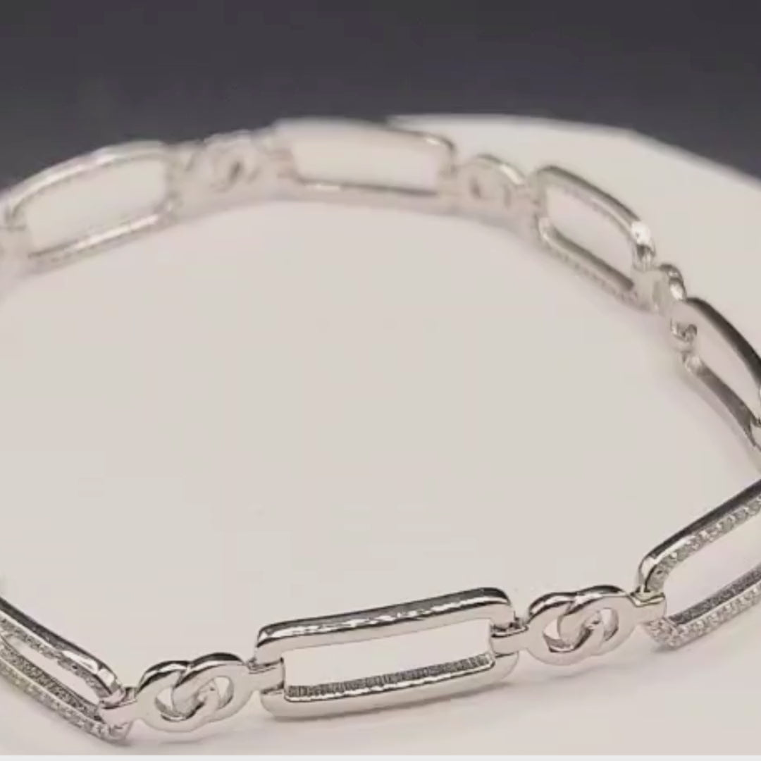 Bracelet en argent 925 – Maillons rectangulaires pavés de zirconiums