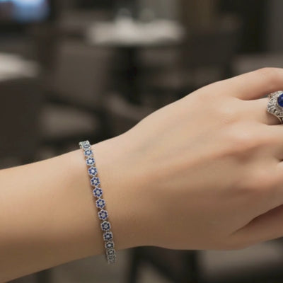 Bracelet Femme Argent 925 Oxydes Bleus – Motifs Rosace