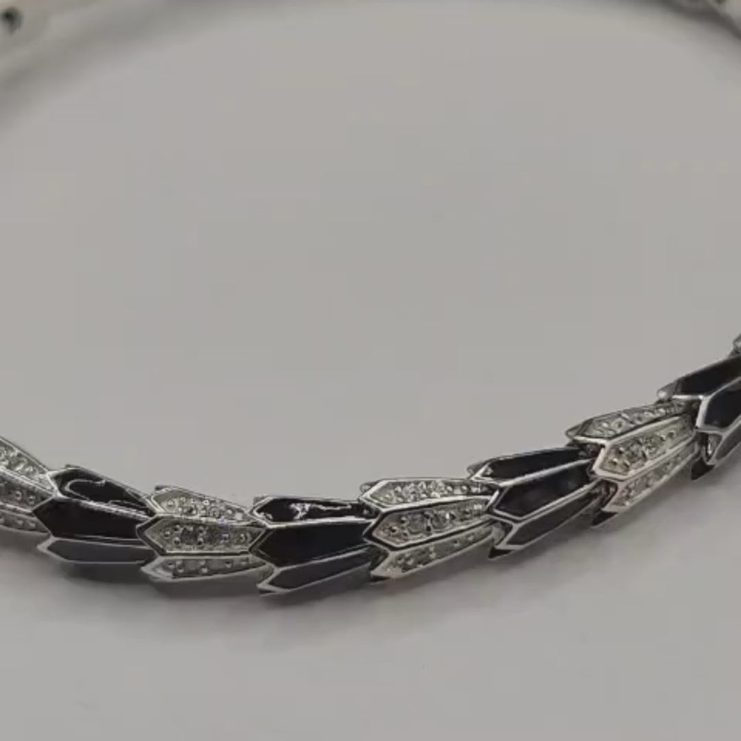 Affirmez votre style avec ce bracelet serpent raffiné, orné d’onyx noir et de zircon verts éclatants aux yeux. Un bijou au design audacieux et élégant, idéal pour apporter une touche de caractère à vos tenues.